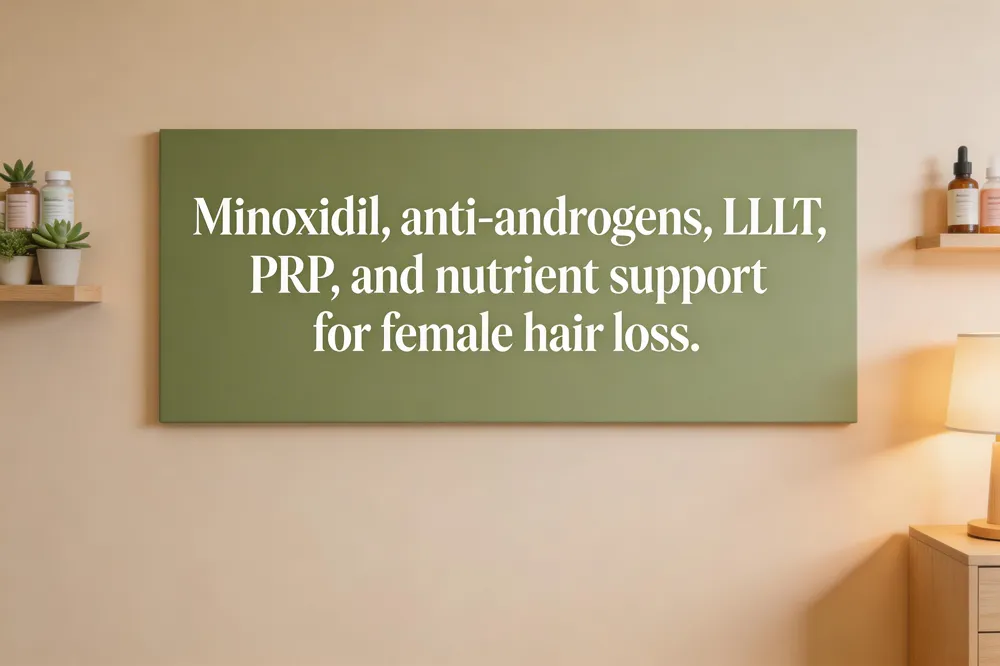 Best medicine for hair fall and regrowth (female) focuses on 2 %–5 % minoxidil, spironolactone, and hormone‑balanced oral contraceptives, with add‑on LLLT or PRP for synergistic benefit.