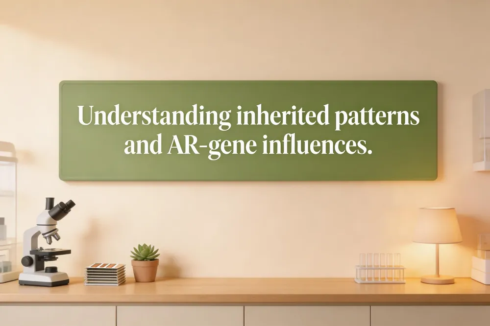 Androgenetic alopecia, driven by sensitivity to dihydrotestosterone (DHT), is the most common hereditary hair loss, with up to 80 % of cases linked to polygenic inheritance and AR‑gene variants from both maternal and paternal sides. Men typically show a recening hairline and crown thinning, while women develop diffuse "Christmas‑tree" thinning with an intact frontal hairline. Early detection—recognizing these patterns and a family history—allows timely intervention.