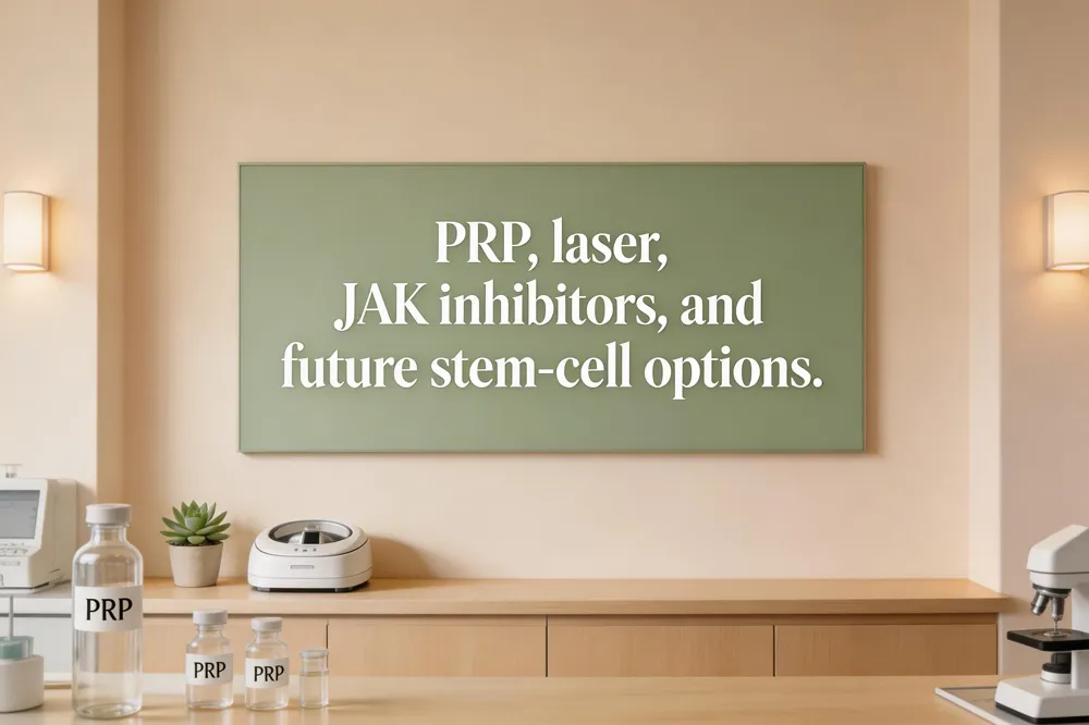 Modern hair‑loss management blends proven modalities with cutting‑edge science. Platelet‑rich plasma (PRP) injections deliver autologous growth factors that stimulate follicular activity and improve density, especially when combined with topical minoxidil. Low‑level laser therapy (LLLT) devices emit red light that enhances microcirculation and cellular metabolism, offering a non‑invasive option for early‑stage androgenetic alopecia. Hair‑transplant surgery—Follicular Unit Transplantation (FUT) and Follicular Unit Extraction (FUE)—relocates healthy donor follicles to balding zones, providing permanent restoration for refractory cases. JAK‑inhibitors, such as toacitinib, are emerging treatments for alopecia areata, modulating the immune response to allow regrowth of patchy loss. Future directions include stem‑cell‑based grafts and peptide‑based topical agents that aim to rejuvenate the hair‑follicle niche.