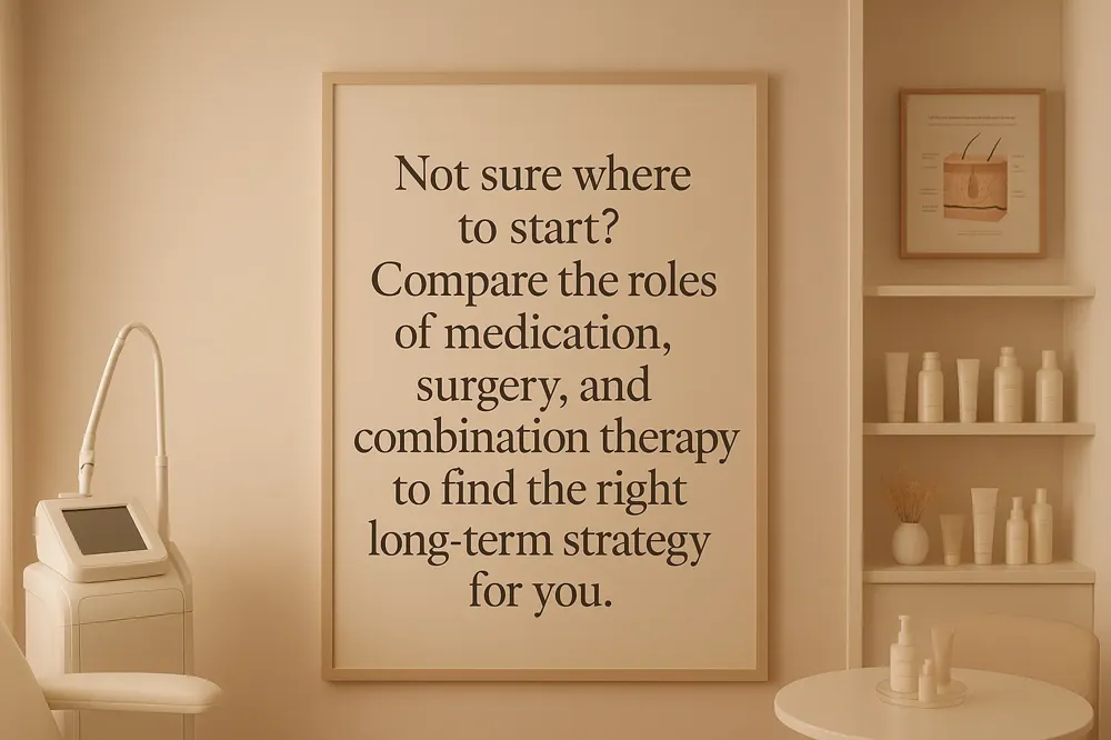 This underscores why a personalized evaluation by a dermatology specialist is crucial. They can accurately diagnose the cause and tailor a personalized hair growth plan that may integrate medications, procedures, or a combination for optimal, lasting results.