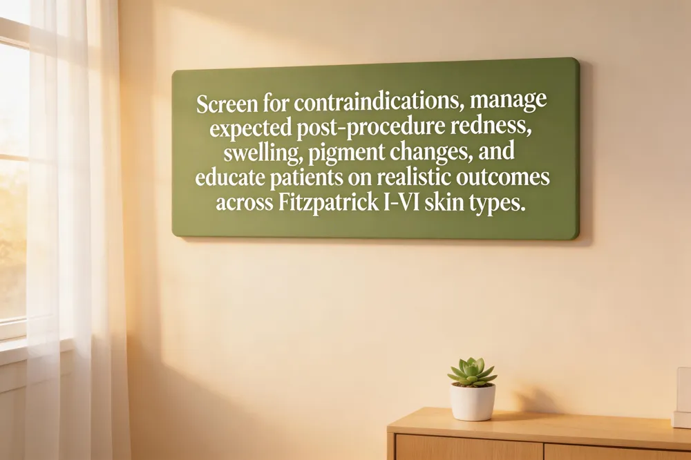 Contra‑Indications and Screening Protocols Patients with recent isotretinoin use, active infections (e.g., herpes simplex), autoimmune disease, keloid scarring, recent radiation, pregnancy, uncontrolled diabetes, or photosensitivity are generally excluded. A thorough medical history, skin examination, sun‑avoidance review, and possibly antiviral prophylaxis are essential before scheduling.