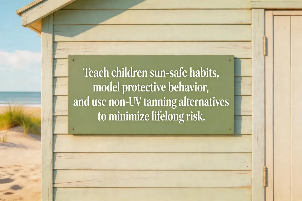 How can I enjoy tanning while minimizing skin‑cancer risk? There is no truly safe UV‑induced tan. Any glow indicates DNA damage that can lead to cancer. If tanning is pursued, limit exposure to short periods before 10 a.m. or after 4 p.m., apply broad‑spectrum sunscreen SPF 30+, reapply every two hours, wear protective clothing, a wide‑brimmed hat, and UV‑blocking sunglasses, and stay in shade whenever possible. Safer alternatives include spray‑on or topical self‑tanners, which provide a bronzed look without UV exposure.